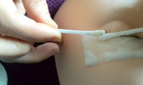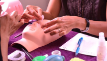 ドール(人のお顔の人形)に、一番基本的なナチュラルデザインのまつ毛エクステの装着をご体験いただきます。
